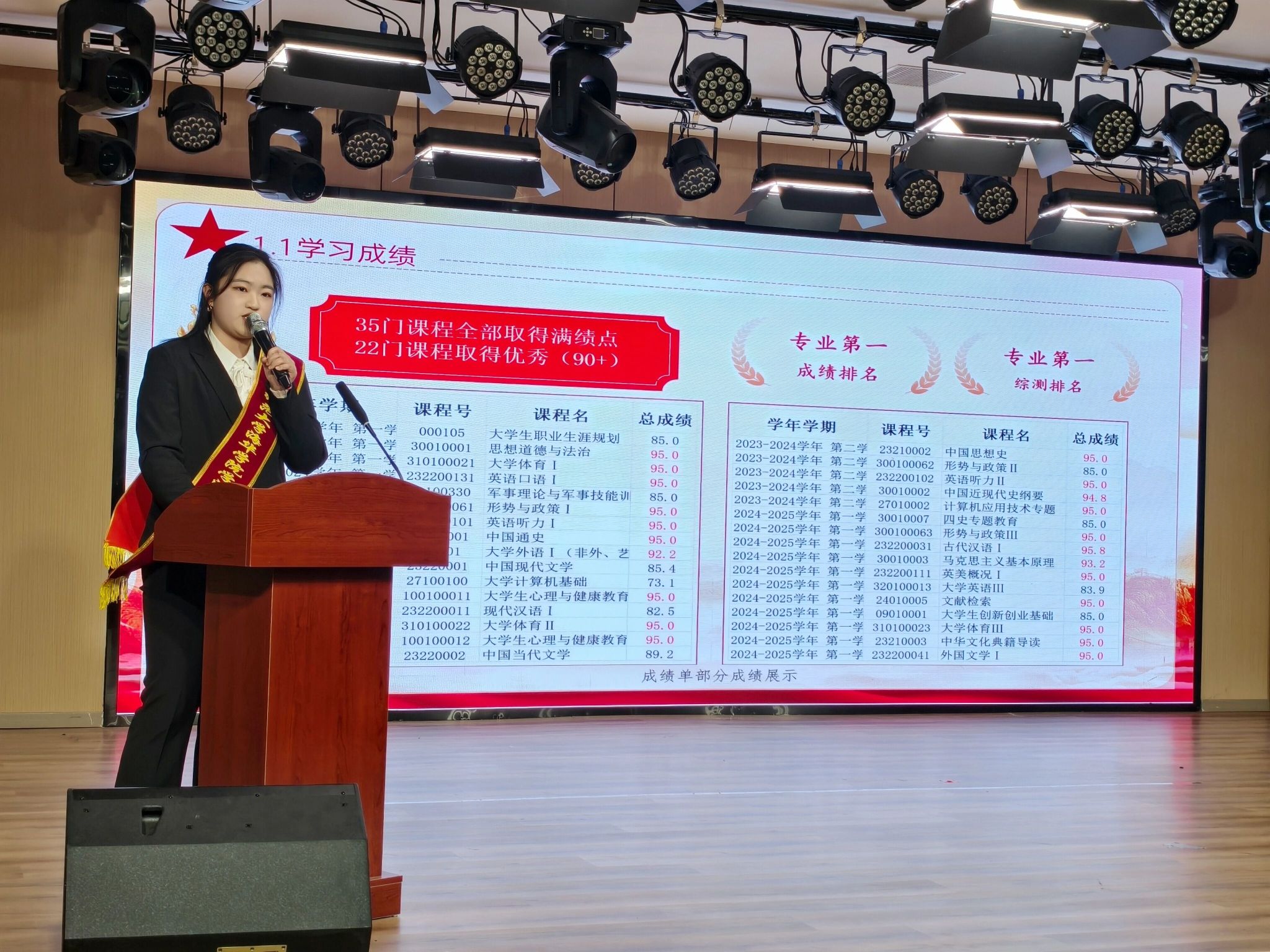 王鹏飞同学聚焦“四六级备考之路”,分享了自己从基础积累到技巧突破的实战经验——从词汇攻坚、听力精练到阅读提速、写作提分,每一步都凝聚着坚持与巧思。他以“夯实基础、科学冲刺”为核心,传递出“脚踏实地、逐梦前行”的学习信念,为备考同学提供了可借鉴的实用方法与奋进力量。