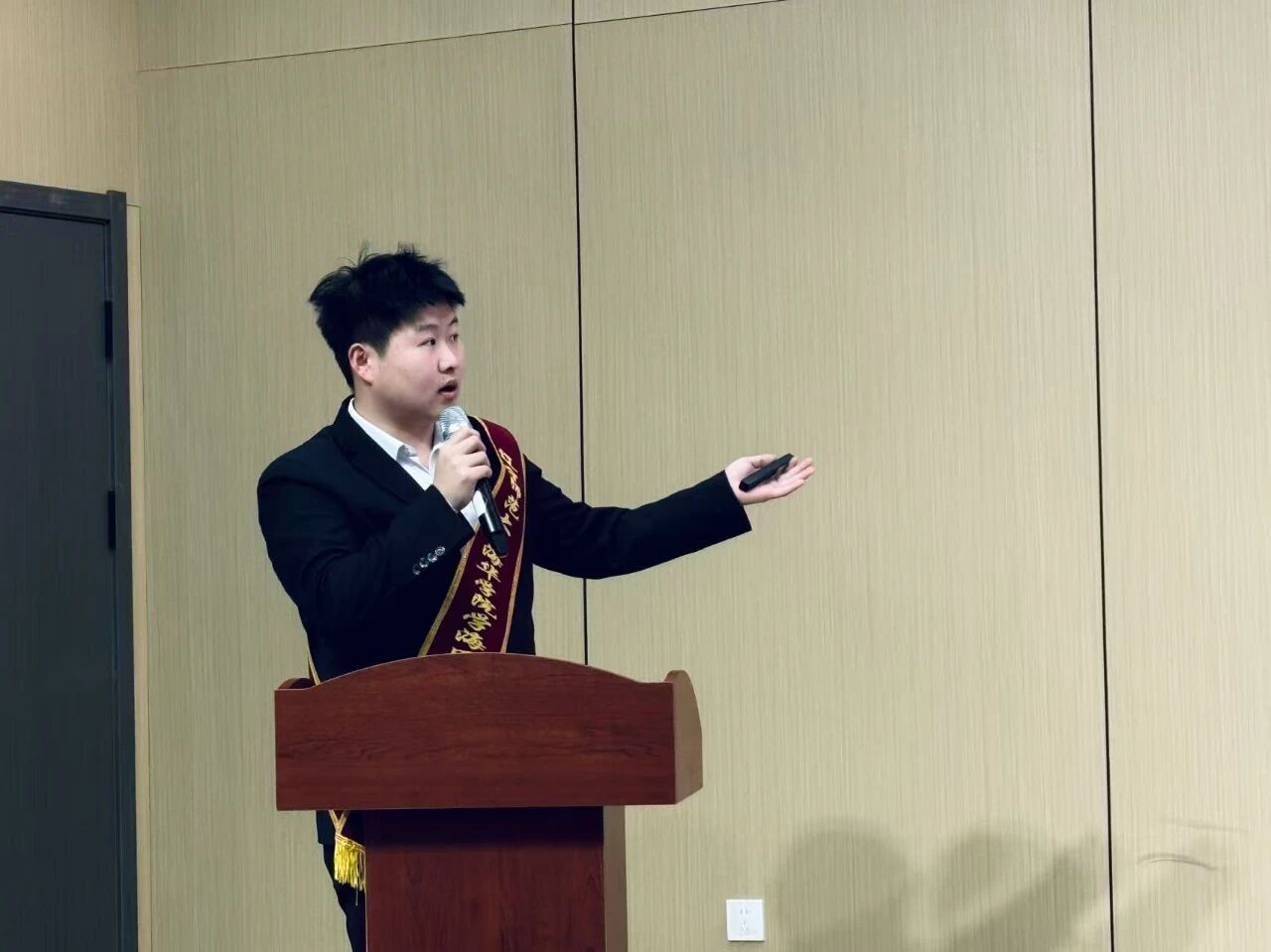 余波同学以“夯实组织堡垒,凝聚奋进力量”为主题,分享党团学习与寝室共建经历,围绕安全文明寝室创建体系,在安全管理、文明素养、学风营造等方面多点发力,通过责任分工、学习互助、特色文化标识等实践取得实效。他结合寝室长履职经历谈体会,鼓励同学们筑牢安全底线、涵养文明习惯、凝聚集体力量,让大学生活在勤学实干与团结互助中绽放光彩。
