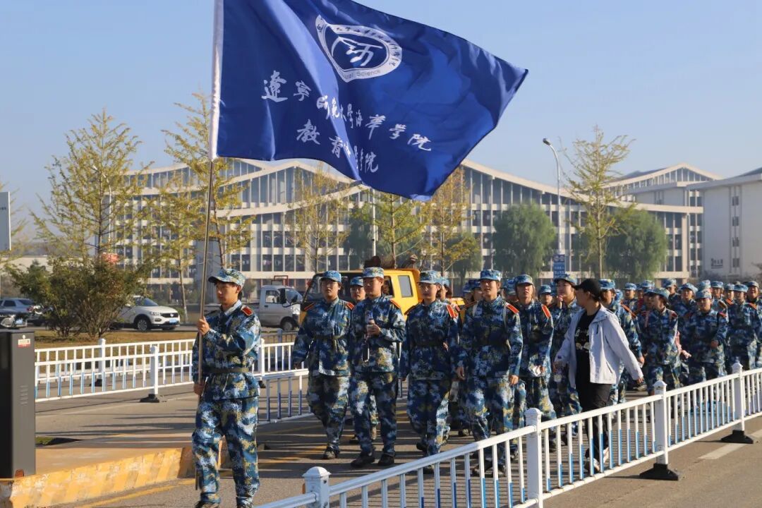 前期部署我校本次军训行军拉练前往大连市庄河市蛤蜊岛,往返路线十公里。军训办公室提前统筹部署,在道路两侧安插指引红旗,清晰标定行进路线;新生辅导员全程随队护航,实时开展安全教育,叮嘱学子严守行进纪律、注意道路安全,及时疏导队伍秩序;宣传条幅沿路线醒目悬挂,营造浓厚氛围;救护车全程跟队机动,医疗保障人员沿线定点值守,配齐急救物资随时待命,为拉练活动安全有序开展提供坚实保障。