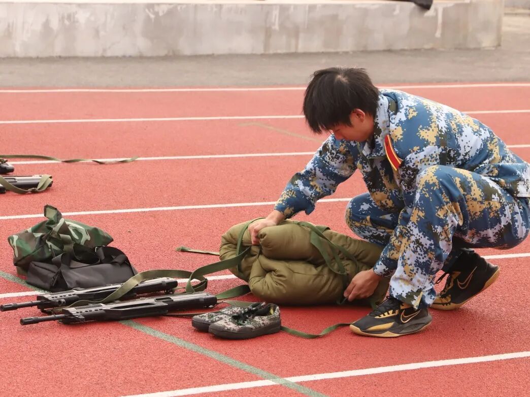 决赛现场,竞技热潮迭起!现场救护环节,选手们争分夺秒、操作精准规范,尽显专业素养;手榴弹投准项目中,大家凝神聚气、瞄准发力,动作稳健连贯;战术比拼里,选手们灵活应变、战术运用娴熟精妙,展现超强临场把控力;30×2蛇形跑赛道上,学子们步伐矫健、身姿舒展,在折返穿梭中尽显速度与激情;打背包环节,手法娴熟利落、捆扎紧实规范,快速成型的背包彰显日常训练功底;轻武器操作流程顺畅、动作标准规范,每一个细节都展现着过硬军事技能。各项目聚焦实操能力检验,选手们全力以赴、奋勇争先,用汗水书写青春答卷,以实力彰显军事素养。
