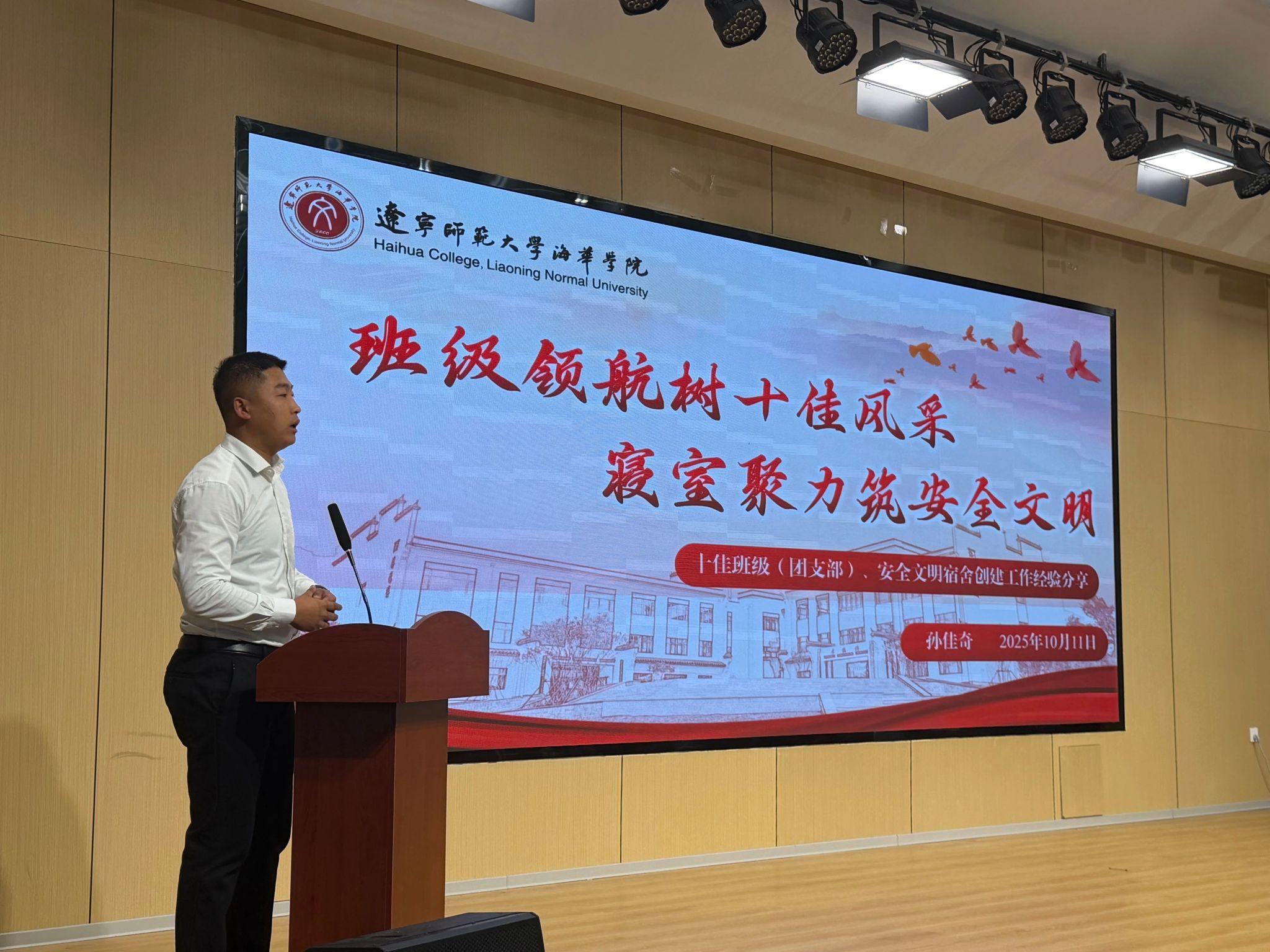 孙佳奇副院长在分享时提到,评选的核心在于“以评促建”,这既能助力学生养成良好习惯,又能树立标杆推动全院提升。筹备阶段学院分工明确、多形式动员,各班、各寝室还通过宣传板、短视频等展现风貌,同步开展读书分享、干部培训、跑团等活动凝聚荣誉感,2024级“十佳班级”申报率100%;评选严守公平,结果公开颁奖,2024级33间寝室获评“安全文明宿舍”,占学院总数91.7%;答辩与表彰现场亮点突出,深化师生对集体建设的认同。他表示,创建工作旨在实现“集体与个人互促”,未来学院将以“五抓五度”推进,让班级与寝室成为学生成长“沃土”,为学校育人筑牢根基。